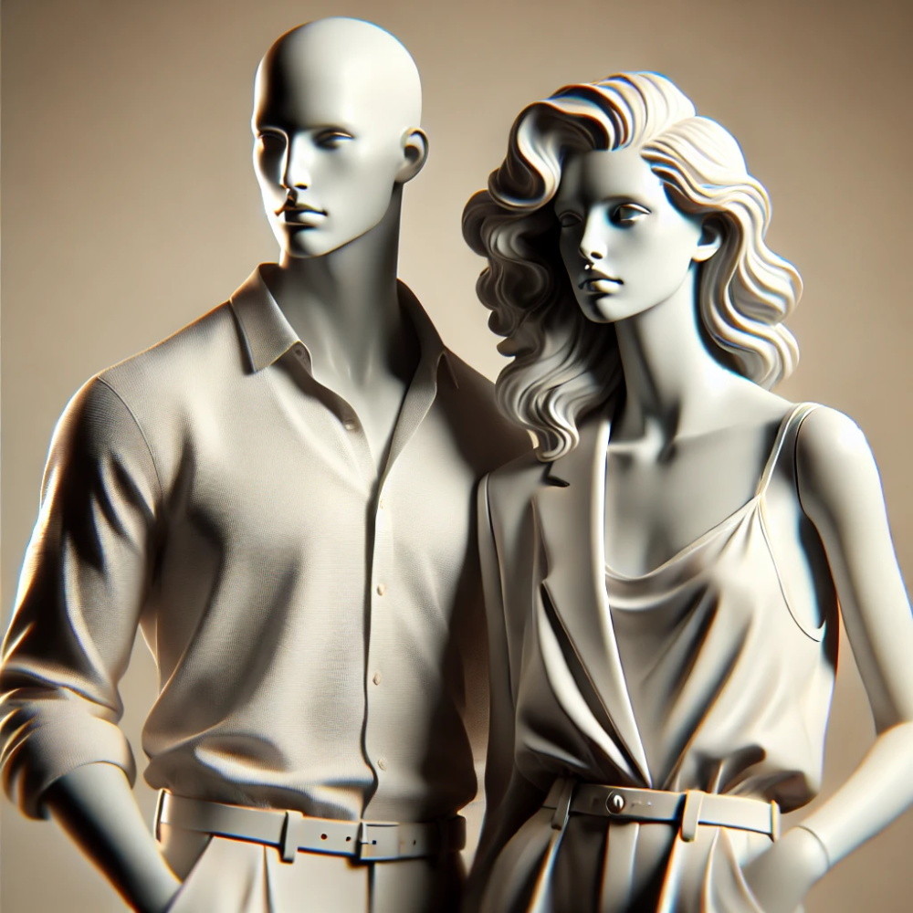Abstract mannequins are characterized by their minimalistic, featureless faces and streamlined forms. These mannequins are highly versatile, allowing retailers to display both men's and women's clothing without focusing on specific facial features or expressions. Their neutral design ensures that the focus remains solely on the outfit, making them an excellent choice for modern, high-fashion brands.
